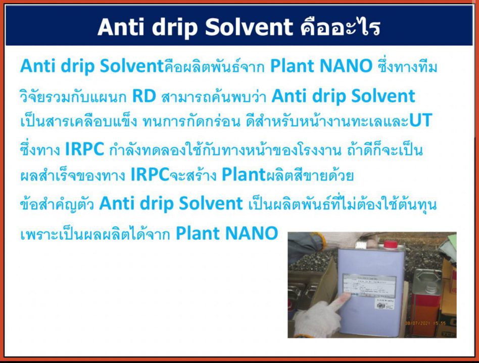 เปิดแนวรุกร่วมพัฒนานวัตกรรมสีและสารเคลือบ มาตรฐานโลกเป็นครั้งแรกของประเทศ กับ โครงการพัฒนาธุรกิจสีและสารเคลือบ (Paint & Coatings) เพื่อพัฒนาผลิตภัณฑ์สีและสารเคลือบมาตรฐานโลกเป็นครั้งแรกของประเทศ ด้วยส่วนผสม Polytetrafluoroethylene  (PTFE) ที่มีคุณสมบัติพิเศษให้มีความทนทานต่อสภาพอากาศที่รุนแรง ช่วยยืดอายุการใช้งานโครงสร้างเหล็กถึงสามเท่า เหมาะสำหรับการนำไปใช้เคลือบโครงสร้างเหล็กในโรงกลั่นน้ำมัน โรงงานปิโตรเคมี สนามบิน ท่าเรือและสะพาน เป็นต้น ช่วยลดความถี่การซ่อมบำรุงงานโครงสร้างซึ่งก่อให้เกิดผลกระทบต่อสิ่งแวดล้อม เป็นการตอบสนองต่อเทรนด์รักษ์โลกด้วยผลิตภัณฑ์ที่ผลิตจากเทคโนโลยีที่ผ่านการวิจัยพัฒนา รวมทั้งยังช่วยลดการนำเข้าจากต่างประเทศ เพิ่มขีดความสามารถในการแข่งขันให้กับอุตสาหกรรมการผลิตสีและสารเคลือบสีของประเทศ สอดคล้องกับวิสัยทัศน์และการดำเนินธุรกิจของทั้งสองบริษัท ที่มุ่งมั่นในการสร้างสรรค์นวัตกรรมเพื่อตอบโจทย์การใช้ชีวิตและสิ่งแวดล้อมที่ดี ความร่วมมือครั้งนี้ เพื่อสร้างมูลค่าเพิ่มและตอบโจทย์ความต้องการของผู้บริโภค ด้วยการเพิ่มประสิทธิภาพของผลิตภัณฑ์ให้ดียิ่งขึ้น เหมาะสมกับสภาพอากาศของประเทศไทยและประเทศในภูมิภาคอาเซียน สามารถลดการปลดปล่อยก๊าซเรือนกระจก เป็นมิตรต่อสิ่งแวดล้อม