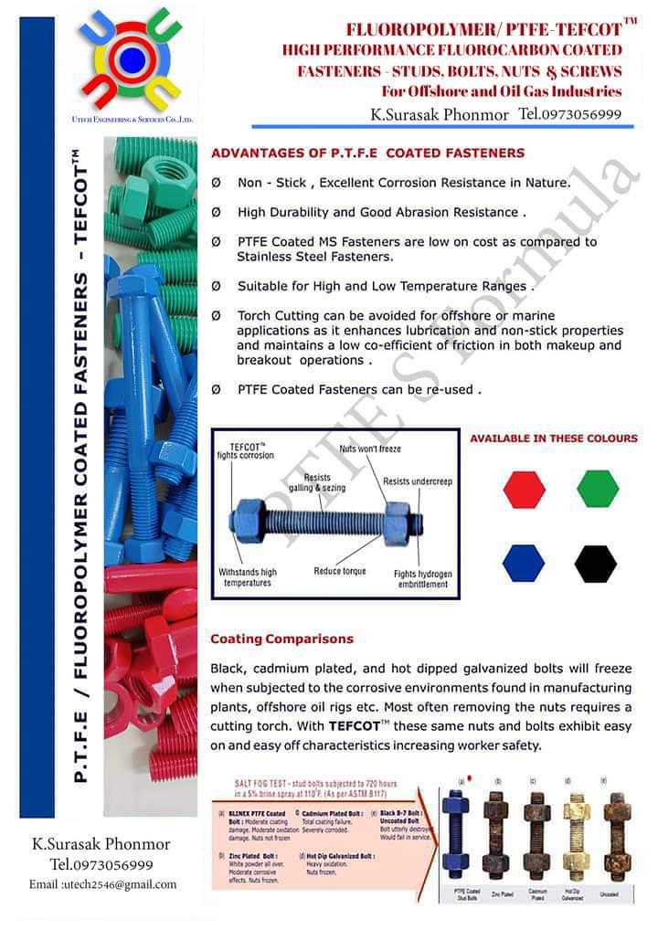 รับเคลือบสารเทฟล่อนที่ใช้กับชิ้นงานทุกชนิดกับชิ้นส่วนของเครื่องจักรในอุตสาหกรรมอาหาร,สิ่งทอ,ยางกาวหรือเคมีภัณต์ ฯลฯ